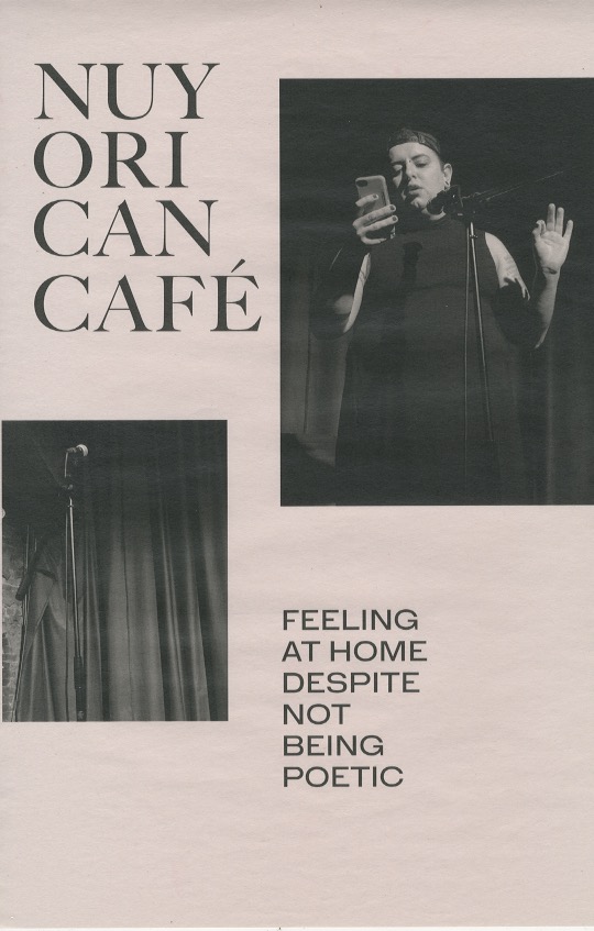 The juxtaposition of a performance piece by the host of the event, Jive Poetic (documented by Pratt Institute), with my observations from the Cafe to make a visual representation of what the experience at the space was without photographic evidence.